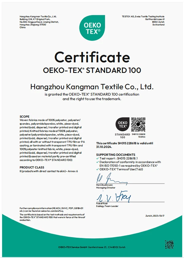 Kangman Textile tiene 30 años de rica experiencia e historia en la impresión y teñido de textiles, con el servicio, la calidad, el rendimiento de costos y la innovación y desarrollo de productos como su principal competitividad, está comprometida con la investigación y el desarrollo de productos textiles de alta gama. K&M Textile también tiene su fábrica de teñido dependiente, un centro de pruebas interno, un excelente equipo de I+D y un equipo de ventas activo, puede diseñar y desarrollar tejidos de acuerdo con los requisitos del cliente. Al mismo tiempo, contamos con una gama completa de productos textiles y una variedad de muestras A4 gratuitas para que usted elija.